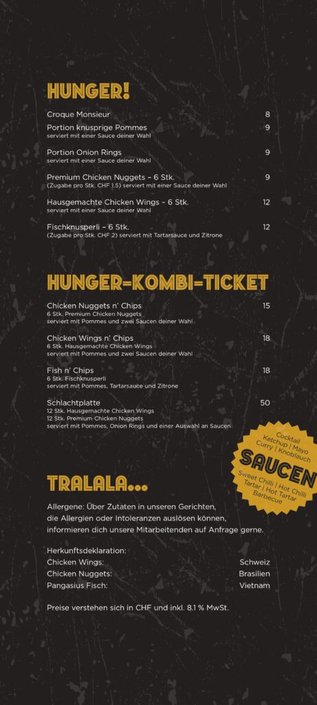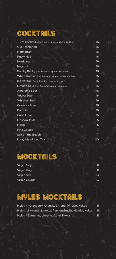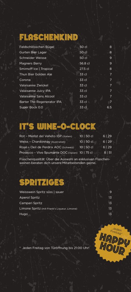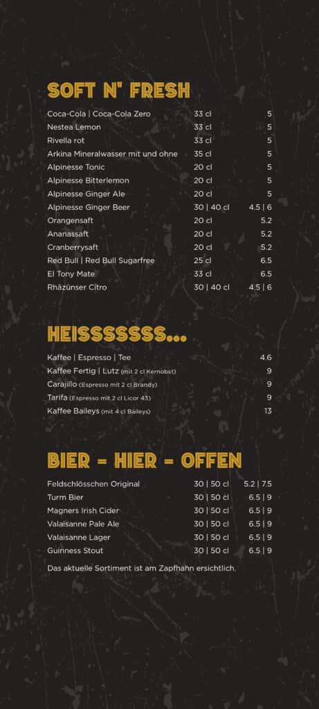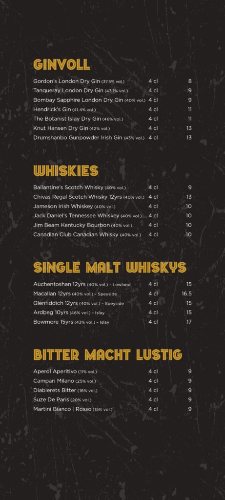 Barkarte und Speisekarte